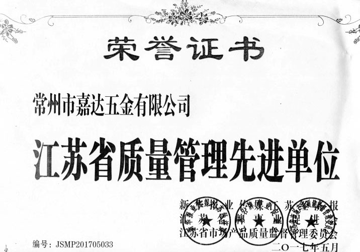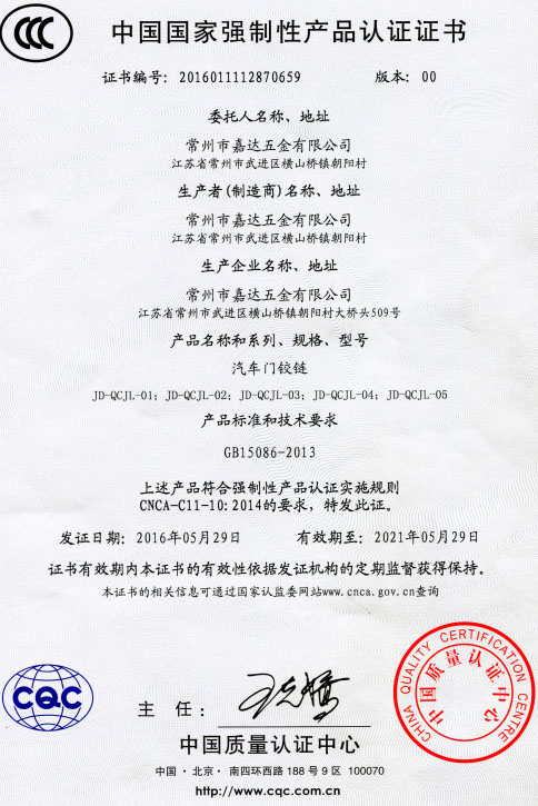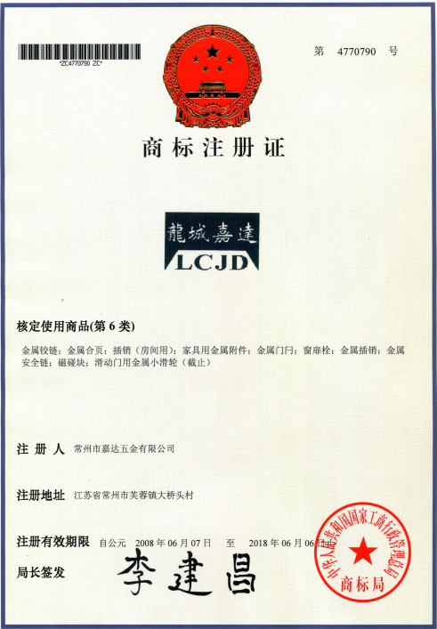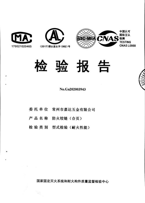常州市嘉達五金有限公司是專業(yè)生產(chǎn)不銹鋼防火、防盜合頁、銅手拉門、銅門鉸鏈、銅花和各種不銹鋼暗插銷的企業(yè).最近又成功開發(fā)承重鉸鏈以及調(diào)節(jié)門縫可調(diào)式鉸鏈.同時引進澳大利亞技術(shù)開發(fā)各種鋁合金透氣百頁窗,遠銷歐美市場. 我司占地面積25000平方米,建筑面積12000平方米;固定資產(chǎn)1200萬元,公司設備齊全,設計獨特,檢測一流,產(chǎn)品適用于高級防火門以及現(xiàn)代高層居室、艦船門的配套,也適應于一般居民.產(chǎn)品經(jīng)"天津國家固定滅火系列和耐火構(gòu)件質(zhì)量監(jiān)督檢驗中心"檢驗合格. 公司重視產(chǎn)品質(zhì)量,重視產(chǎn)品開發(fā)創(chuàng)新.目前已建立完整的質(zhì)量管理體系:通過ISO9001:2000質(zhì)量認證體系和中國強制認證3C認證.產(chǎn)品曾獲國家知識產(chǎn)權(quán)局"中國專利技術(shù)博覽會"金獎、獲得"企業(yè)資信等級AAA級"、"信用(合同)AAA級企業(yè)"、"中國檢驗協(xié)會會員"、"中國電器照明協(xié)會委員"、"中國工商協(xié)會委員"、"首批國家質(zhì)量服務信得過單位"、"常州市文明單位"及"武進區(qū)文明單位"的稱號. 公司的經(jīng)營宗旨是"以顧客為中心、以質(zhì)量為市場、以創(chuàng)新求發(fā)展、以管理求效益". 公司將一如既往,以一流的產(chǎn)品質(zhì)量,誠心周到的服務使顧客滿意,以更好的服務于客戶.