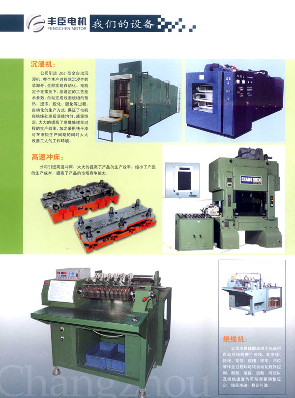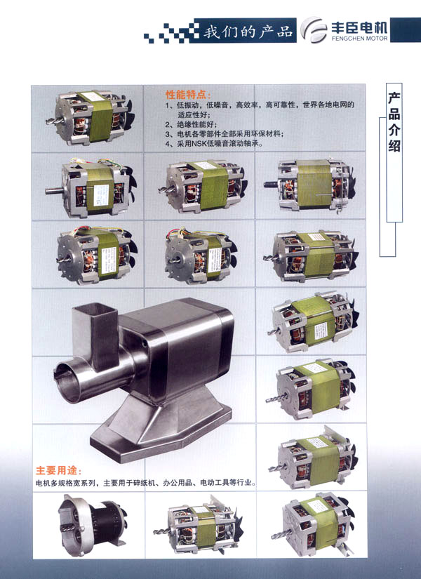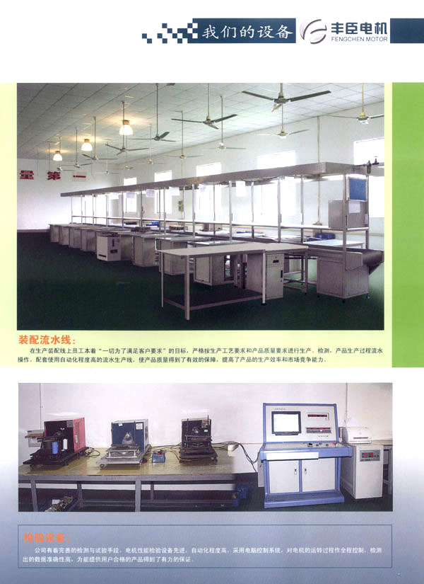 常州市豐臣電機(jī)有限公司成立于2001年6月,是一家在投資1000萬(wàn)元基礎(chǔ)上創(chuàng)辦的股份合作制企業(yè)。 公司坐落于常州市遙觀鎮(zhèn)劍湖開(kāi)發(fā)區(qū),西臨京杭大運(yùn)河旁,南依312國(guó)道,北靠常錫路,交通便利,具有得天獨(dú)厚的地理優(yōu)勢(shì)。 豐臣電機(jī)公司專業(yè)生產(chǎn)從YY70-YY145系列感應(yīng)電動(dòng)機(jī),年生產(chǎn)能力達(dá)150萬(wàn)臺(tái),年生產(chǎn)總值近1億元人民幣。公司現(xiàn)擁有員工300余人,其中高級(jí)工程師、高級(jí)技師、高級(jí)管理人員及其它專業(yè)技術(shù)人員40余人;擁有先進(jìn)的生產(chǎn)能力、企業(yè)管理能力、技術(shù)開(kāi)發(fā)能力、質(zhì)量管理經(jīng)驗(yàn);具有各類(lèi)專業(yè)生產(chǎn)設(shè)備25臺(tái)(套),專業(yè)檢測(cè)設(shè)備器具50余套。 本公司在發(fā)揮傳統(tǒng)技術(shù)優(yōu)勢(shì)的基礎(chǔ)上,積極開(kāi)展多方位的技術(shù)合作,協(xié)同常州市津盛辦公用品有限公司開(kāi)發(fā)感應(yīng)電機(jī)產(chǎn)品市場(chǎng)。公司引進(jìn)國(guó)際上先進(jìn)的全自動(dòng)浸漆生產(chǎn)線,產(chǎn)品生產(chǎn)自動(dòng)化程度高,產(chǎn)品質(zhì)量穩(wěn)定可靠。電機(jī)表面有噴漆、涂塑等防腐處理,產(chǎn)品具美觀、耐腐蝕、安裝簡(jiǎn)便等優(yōu)點(diǎn),廣泛應(yīng)用于辦公設(shè)備用品、電動(dòng)工具等行業(yè)。 本公司產(chǎn)品已通過(guò)UL認(rèn)證,并于2002年通過(guò)ISO9001:2000國(guó)際質(zhì)量管理體系認(rèn)證, 2005我公司年被評(píng)為江蘇省市場(chǎng)重質(zhì)量守誠(chéng)信優(yōu)秀單位。 本公司以顧客滿意為宗旨,以科技創(chuàng)新、精品服務(wù)為經(jīng)營(yíng)理念,注重產(chǎn)品質(zhì)量的持續(xù)改進(jìn)。我們的質(zhì)量方針是:“以顧客要求為己任,我們不斷追求技術(shù)領(lǐng)先、優(yōu)質(zhì)高效,滿意服務(wù)”,我公司真誠(chéng)與各新老顧客合作,攜手共進(jìn)。