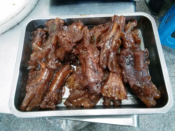 常州市武進區(qū)嘉澤蔣師傅鹵菜店經(jīng)營已有30多年,本產(chǎn)品采用祖?zhèn)髑旯欧郊右钥茖W營養(yǎng)的獨特鹵料配方、加入30多種名貴香料和中藥材秘制而成,達到色、香、味、形的俱加效果。做出來的產(chǎn)品不僅口感鮮美、香盈撲鼻、而且色澤誘人!肉感細膩、韌勁適度、有嚼勁、香辣入骨、不加塞牙縫,食用后具有特別的回味宇香,是極好的送禮佳品。
