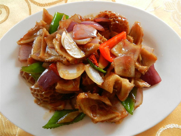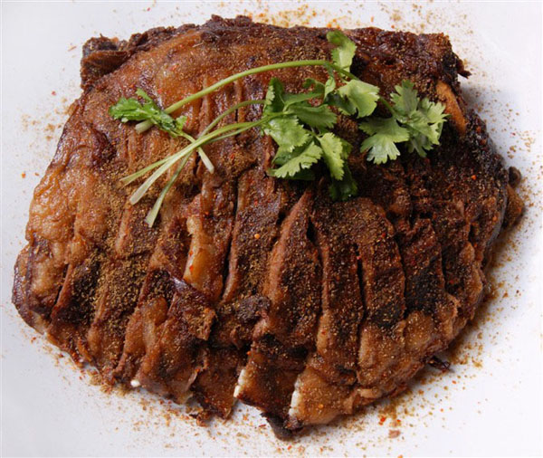 談家的羊肉館位于鄭陸老街上,深秋的一天,記者來(lái)到這家羊肉館,穿過(guò)大堂走到廚房里,幾名工人正在忙著處理羊肉。余菊華穿著大紅色的薄毛衣,坐在桌子旁,正在麻利地剔著羊肉上的肥油。她是羊肉館的老一代老板娘,如今和老伴談仲興一起,仍天天來(lái)店里幫著兒子談旭東打下手。余阿姨隨手拿過(guò)一塊長(zhǎng)方形的肉皮,用一把小刮刀撳在上面,輕輕地刮著,一團(tuán)團(tuán)白白的油被剔了下來(lái),堆在一邊!拔壹业难蛉馀酶蓛舻模壬系姆嗜膺有筋筋拉拉的東西,全都要弄掉,就是自己家買了豬肉燒紅燒肉,也不可能弄到這么干凈的,F(xiàn)在的客人都怕胖,所以一定要處理得干干凈凈!庇喟⒁陶f(shuō)。剔好的肉皮是用來(lái)熬成皮凍然后混和著羊肉壓制成羊糕的,只有清理得干凈,沒(méi)有一點(diǎn)雜質(zhì),羊糕的質(zhì)量才會(huì)好。