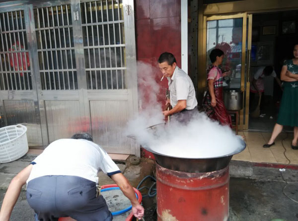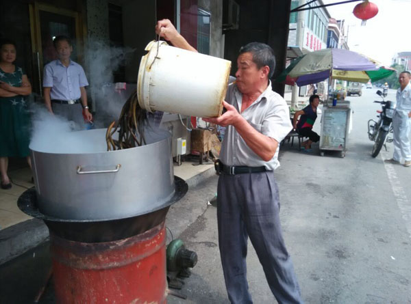 常州新北區(qū)孟河公陽小吃店從事鱔絲面23年,經(jīng)營面積100平方米,黃鱔全是野生,面湯采用高湯制作(鱔魚湯),下面的時候先用開水把黃鱔燙熟,然后用竹刀批下二條黃鱔肉,除去骨頭肚腸,切成段后入油鍋里炸酥,再用白湯烹制成為面澆頭。而面湯是用鱔魚骨頭、豬骨等用大鍋猛火煮上三、四個鐘頭,成為一鍋濃濃的白湯,再進行調味,吃到嘴里全身舒坦。