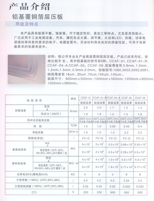 本公司是一家專(zhuān)業(yè)從事研發(fā)、生產(chǎn)金屬基(鋁基、鐵基、銅基)覆銅箔層壓板的民營(yíng)科技企業(yè)。公司位于江蘇省常州市新北區(qū)春江鎮(zhèn),京滬高速鐵路火車(chē)站落戶(hù)本地區(qū),相距8Km,滬寧高速公路出口相距8Km,常州民航機(jī)場(chǎng)相距18Km,交通便捷,環(huán)境優(yōu)美。 公司占地面積18000㎡,廠(chǎng)房面積38000㎡,員工300多人,金屬基覆銅板和金屬基印制板的年產(chǎn)能分別為800,000㎡和380,000㎡。公司技術(shù)力量雄厚,其中高級(jí)工程師20名,技術(shù)人員50名,并與本地大學(xué)掛鉤。公司擁有全套的金屬基覆銅箔層壓板檢驗(yàn)設(shè)備。自主開(kāi)發(fā)的產(chǎn)品并獲得國(guó)家實(shí)用新型專(zhuān)利,專(zhuān)利號(hào):ZL200620165311.4、ZL200820185660.1、ZL200920035286.1、ZL200920255499.5、ZL200920284561.3。 以及多項(xiàng)發(fā)明專(zhuān)利,專(zhuān)利號(hào):ZL 200910026210.7、申請(qǐng)?zhí)枺?00910234775.4。自主開(kāi)發(fā)的散熱器基覆銅箔印制電路板層壓板,已申請(qǐng)發(fā)明專(zhuān)利,申請(qǐng)?zhí)枺?00910184663.2。 金屬基覆銅箔層壓板的特點(diǎn)就是高散熱,低熱阻,散熱效果特別好! 公司生產(chǎn)的CCAF-01型鋁基覆銅箔層壓板,熱阻為1.0℃/W,熱導(dǎo)率為1.0W/m·K;CCAF-04-A型鋁基覆銅箔層壓板,熱阻為0.65℃/W,熱導(dǎo)率為1.3~1.5W/m·K;CCAF-05型鋁基覆銅箔層壓板,熱阻為0.45℃/W,熱導(dǎo)率為2.0~2.2W/m·K,CCAF-06型鋁基覆銅箔層壓板,熱阻為:0.4℃/W,熱導(dǎo)率為2.5~2.8W/m·K。接近國(guó)際先進(jìn)水平,自主開(kāi)發(fā)的散熱器基覆銅箔印制電路板層壓板,填補(bǔ)國(guó)內(nèi)空白。公司生產(chǎn)的鋁基覆銅箔板廣泛應(yīng)用于汽車(chē)點(diǎn)火器、摩托車(chē)調(diào)壓器、音箱模塊電源、通訊模塊電源、變頻模塊電源;各種大功率LED工程景觀照明:洗墻燈、投光燈、草坪燈、水底燈、噴泉燈、路燈、室內(nèi)照明、長(zhǎng)1.2米LED照明燈、手電筒及液晶顯示器等。 鐵基覆銅箔板廣泛用于微型電機(jī)和馬達(dá)驅(qū)動(dòng)器等。 銅基覆銅箔板應(yīng)用于太陽(yáng)能電站和軍工產(chǎn)品。 公司產(chǎn)品在深得國(guó)內(nèi)多數(shù)知名企業(yè)(海爾,海信,京東方等)認(rèn)可選用的同時(shí)還遠(yuǎn)銷(xiāo)海外,美國(guó)、德國(guó)、土耳其、芬蘭、意大利、法國(guó)、菲律賓、印度、馬來(lái)西亞、新加坡、日本、韓國(guó)及中國(guó)的港臺(tái)地區(qū)等。 公司產(chǎn)品已獲得UL全性能認(rèn)證,檔案號(hào):覆銅板E250901,印制板E348435;CQC安全認(rèn)證和ISO9001:2008質(zhì)量管理體系認(rèn)證,ISO14001:2004環(huán)境管理體系認(rèn)證。 客戶(hù)的需要是我們不懈的追求,公司將以先進(jìn)的技術(shù),科學(xué)的管理,良好的質(zhì)量,優(yōu)惠的價(jià)格為新老客戶(hù)提供精良的服務(wù)!