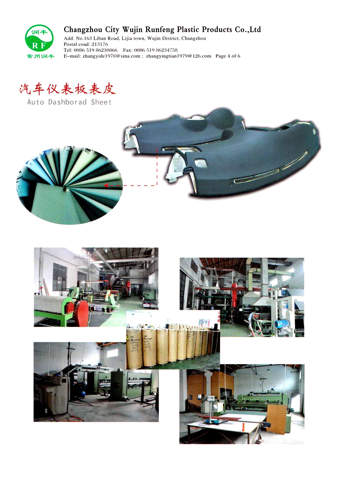 本公司專業(yè)生產(chǎn)汽車儀板軟化表皮、PVC門護(hù)板表皮、PVC復(fù)合制品、壓延薄膜制品,(塑料制品除醫(yī)用塑料制品),車輛零部件,機(jī)械電器零部件,電子元件,沖壓件制造,加工無妨制品,玻纖氈(GFP板),麻氈板等。本公司的產(chǎn)品在國(guó)內(nèi)一線乘用車上廣泛使用。產(chǎn)品通過國(guó)家汽車質(zhì)量監(jiān)督檢驗(yàn)中心檢測(cè),并取得了各種證書,如亞瑟國(guó)際認(rèn)證;ISO/TS1694:2009等。
