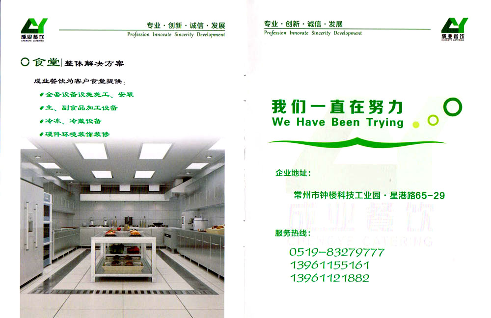 常州市成業(yè)餐飲管理有限公司位于常州市鐘樓區(qū)星港58號(hào),是一家專業(yè)從事中小學(xué)師生營養(yǎng)餐制售及配送一體化的企業(yè),自創(chuàng)立以來,始終堅(jiān)持“專業(yè)•創(chuàng)新•誠信•發(fā)展”的經(jīng)營理念,牢固樹立“消費(fèi)者利益至上”的行業(yè)價(jià)值觀,以“社會(huì)利益和經(jīng)濟(jì)利益共同實(shí)現(xiàn)”為發(fā)展目標(biāo),深入推進(jìn)各項(xiàng)創(chuàng)建工作,積極響應(yīng),工商協(xié)同、培育品牌、信息共享、完善制度、增強(qiáng)能力,從而更好地服務(wù)于在校就餐師生。 公司董事長陳葉東先生經(jīng)過多年的自主經(jīng)營歷程,積累經(jīng)驗(yàn),勇于創(chuàng)新,積極進(jìn)取,于2009年3月籌建創(chuàng)立常州市成業(yè)餐飲管理有限公司,注冊(cè)資金518萬元整,發(fā)展至今,已經(jīng)營管理30多家中小學(xué)、企業(yè)食堂,每天為45000多人次提供優(yōu)質(zhì)放心午餐,擁有良好的經(jīng)營信譽(yù)和口碑。 為了更好的適應(yīng)常州學(xué)生營養(yǎng)餐供給模式,于2015年2月投建2000平方米中心廚房,同年8月正式投入使用,以先進(jìn)的恒溫配送模式滿足校內(nèi)無食堂的學(xué)校供餐需求。2018年5月,鑒于公司發(fā)展需求,重新投建350平方米團(tuán)餐加工及配送中心,8月正式投入生產(chǎn),力求成為常州市一流的學(xué)生營養(yǎng)餐配送企業(yè)。 基于常州公司的穩(wěn)步發(fā)展,成業(yè)并沒有滿足現(xiàn)狀,停下腳步。2017年7月以980萬注冊(cè)創(chuàng)建鹽城成業(yè)餐飲管理有限公司,為鹽城阜寧教育體系各單位提供食堂管理及師生團(tuán)膳配送服務(wù)。至2019年3月,日供餐人次已達(dá)21000多人次。 2018年7月,成業(yè)餐飲在鹽城地區(qū)相繼啟動(dòng)濱海和響水兩縣的集體用餐配送及食品原料大宗采購項(xiàng)目,當(dāng)?shù)叵嚓P(guān)政府部門對(duì)公司的發(fā)展規(guī)劃及實(shí)施進(jìn)度給予了高度評(píng)價(jià)和支持。