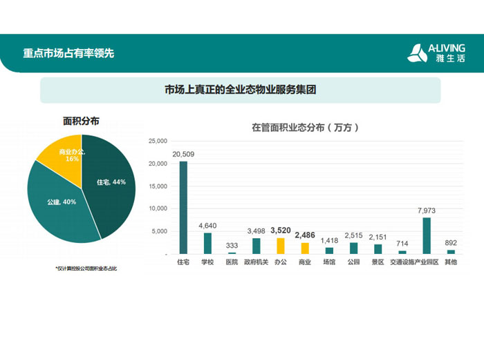 二、全面市場化運(yùn)作,加速增值服務(wù)發(fā)展 隨著越來越多物業(yè)服務(wù)企業(yè)走向資本市場,物業(yè)行業(yè)之間的市場競爭也愈演愈烈。行業(yè)集中度不斷提升,消費(fèi)者的需求日愈多元化,面對這樣的發(fā)展浪潮,雅生活集團(tuán)勇敢跳出原有只依靠承接自建物業(yè)的經(jīng)營模式,開始實(shí)施全面市場化運(yùn)作,通過市場拓展、兼并收購尋求規(guī)模的迅速擴(kuò)大。 目前,雅生活集團(tuán)每年市場拓展目標(biāo)2000萬平方米,承接業(yè)態(tài)除主流住宅物業(yè)以外,還包括商業(yè)、寫字樓、旅游地產(chǎn)及酒店等非住宅物業(yè)管理業(yè)務(wù)。憑借26年的高品質(zhì)物業(yè)服務(wù)經(jīng)驗(yàn)和良好的品牌形象,雅生活集團(tuán)迅速在拓展市場成為后起之秀。2020年,雅生活集團(tuán)的市場拓展產(chǎn)值將達(dá)到20億。 在兼收并購方面,雅生活集團(tuán)精準(zhǔn)出擊,成功收購綠地物業(yè)100%股權(quán),這也成為物業(yè)管理行業(yè)的一大盛事。接下來,雅生活集團(tuán)將繼續(xù)整合最優(yōu)質(zhì)資源,迅速做大做強(qiáng)。 在多種經(jīng)營方面,雅生活集團(tuán)以業(yè)主需求為出發(fā)點(diǎn),對標(biāo)優(yōu)秀同行,因地制宜,創(chuàng)新發(fā)展,積極開拓多種增值服務(wù),讓業(yè)主真正體會“驚喜+感動”。