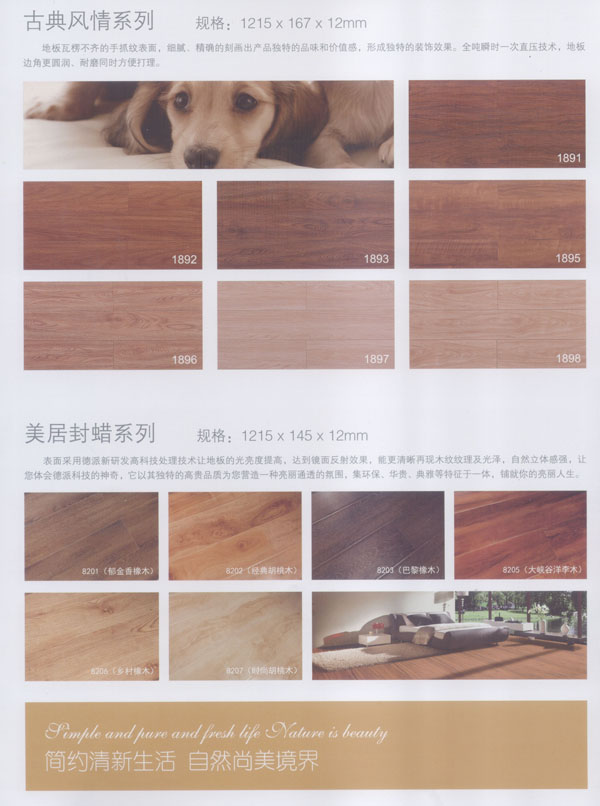 公司生產的地板所選用的材料均為進口或國內上等材料。嚴格的入廠檢驗,不使任何不合格的原材料流入生產環(huán)節(jié),優(yōu)異的生產加工工藝使原材料和精良設備的優(yōu)勢發(fā)揮至及致;嚴格的質量管理體系更使每一流轉環(huán)節(jié)的產品品質一流。每塊出廠的地板都符合比國標更嚴格品質標準。