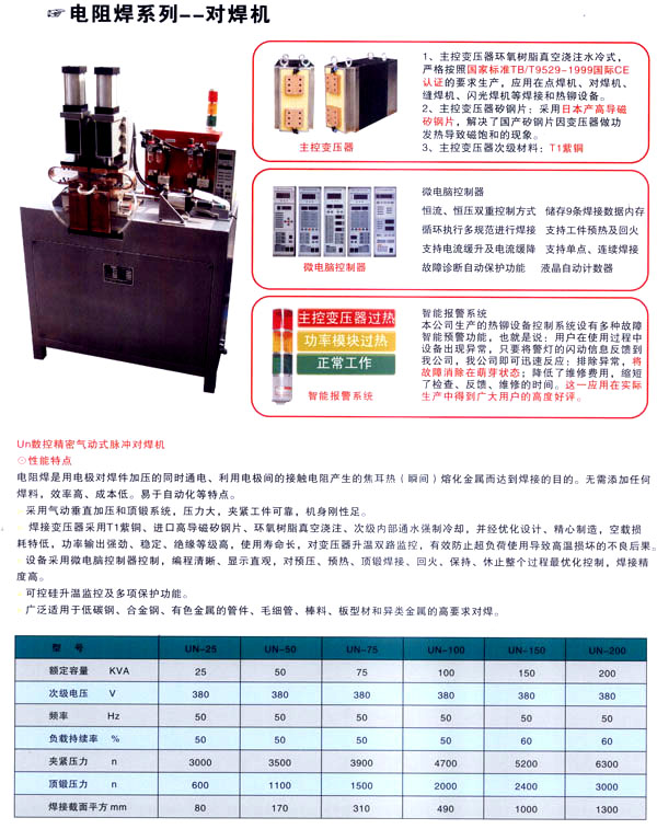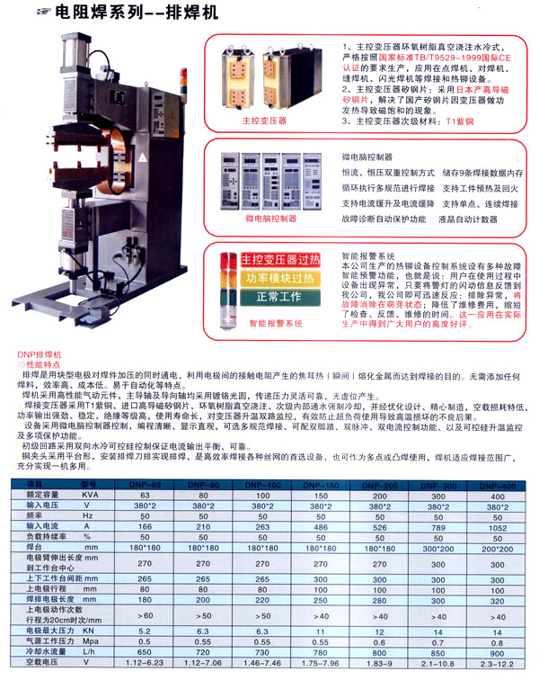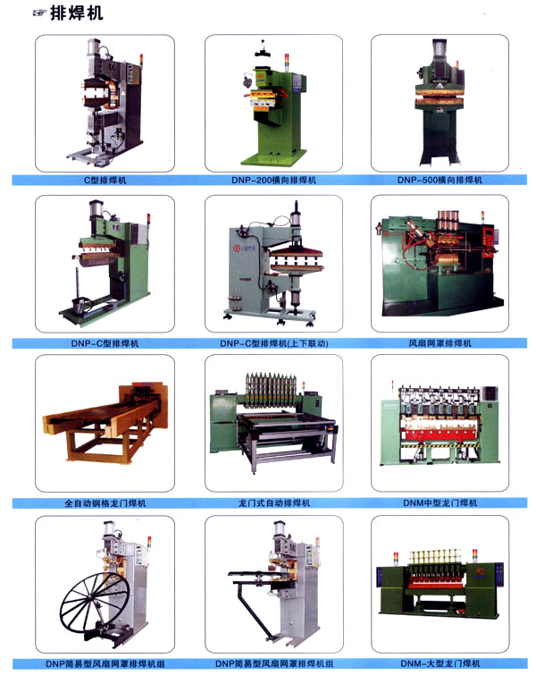 焊割主要產(chǎn)品有:點焊機系列、縫焊機系列、環(huán)縫焊接機床、凸焊機、排焊機、儲能焊機、對焊機、龍門焊機、太陽能焊接設備和機器人焊接系統(tǒng)及外圍設備等;并為用戶設計制造專用焊接設備。