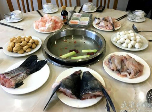洛陽(yáng)戴溪青魚(yú)火鍋店,眾所周知,火鍋屬于川菜,以麻、辣、鮮、香著稱,是四川的美食代表。如今,火鍋店遍地開(kāi)花。作為本土自創(chuàng)品牌老字號(hào)火鍋店,洛陽(yáng)戴溪青魚(yú)火鍋店20年來(lái)屹立不倒,自然有它獨(dú)到的地方。 青魚(yú)火鍋獨(dú)此一家,青魚(yú)火鍋,顧名思義,最主要的食材當(dāng)然就是青魚(yú)。走進(jìn)洛陽(yáng)戴溪青魚(yú)火鍋店,就會(huì)被大堂內(nèi)的兩塊大匾所吸引,上面詳細(xì)介紹了戴溪青魚(yú)!俺V菔忻飘a(chǎn)品”、“武進(jìn)農(nóng)家特色菜”,可見(jiàn)戴溪青魚(yú)的知名度。 洛陽(yáng)鎮(zhèn)戴溪地區(qū)養(yǎng)殖青魚(yú)歷史悠久。從20世紀(jì)50年代開(kāi)始,當(dāng)?shù)鼐拖破鹆损B(yǎng)殖青魚(yú)的熱潮,并逐步形成了獨(dú)具特色的青魚(yú)產(chǎn)業(yè)。青魚(yú)是四大家魚(yú)之首,肉質(zhì)細(xì)嫩且鮮美,蛋白質(zhì)含量超過(guò)雞肉,是淡水魚(yú)中的上品。 近水樓臺(tái)先得月,今年57歲的陳煥祥是土生土長(zhǎng)的戴溪人,10年前,他將自己已經(jīng)開(kāi)了10年的重慶火鍋店轉(zhuǎn)型升級(jí),“既然凡是能吃的食物都可以在火鍋中燙食,何不把特產(chǎn) 戴溪青魚(yú)作為火鍋食材呢’”據(jù)了解.這也是常武地區(qū)唯一一家青魚(yú)火鍋店。 戴溪青魚(yú)火鍋店選用的都是附近漁場(chǎng)的正宗戴溪青魚(yú).體形瘦長(zhǎng),魚(yú)身烏黑.重量在12斤左右。在火鍋店的原料間,記者見(jiàn)到了一口巨大的魚(yú)池,里面養(yǎng)的部是活蹦亂跳的戴溪青魚(yú)!皝(lái)我們店里消費(fèi)的,大都是;中著青魚(yú)火鍋來(lái)的.平均一天就要?dú)? 2條青魚(yú)!标悷ㄏ楦嬖V記者。 戴溪青魚(yú)全身都是好食材,在食材的挑選上.戴溪青魚(yú)火鍋店絕對(duì)不馬虎。戴溪青魚(yú)全身都是好食材.在這里.魚(yú)尾、魚(yú)頭、魚(yú)塊、魚(yú)片、魚(yú)丸、魚(yú)鰾.關(guān)于青魚(yú)的每一道菜品都透著新鮮。光是魚(yú)丸就分兩種,一種是白煮,一種是油炸,其中,炸魚(yú)丸是食客必點(diǎn)菜。將魚(yú)肉、雞蛋混合,充分?jǐn)嚢,揉捏直至融為一體.再放入油鍋中。魚(yú)丸表皮逐漸被油炸成金黃,慢慢浮上油面.待熱油滴;爭(zhēng)便是美味上桌之時(shí)。 “青魚(yú)尾巴鰱魚(yú)頭”的美食俗話,提醒人們青魚(yú)最美味的是尾段。青魚(yú)火鍋?zhàn)匀簧俨涣饲圄~(yú)尾巴.將魚(yú)尾細(xì)劃幾刀.放入滾熱的火鍋中煮食。青魚(yú)體量大,在河中游動(dòng)覓食時(shí).尾巴用力尤甚,所以魚(yú)尾部分豐腴黏軟勝似魚(yú)翅。 說(shuō)到涮魚(yú)片.不像普通火鍋店里切得薄如蟬翼的魚(yú)片.這里的每片青魚(yú)片都有三四毫米厚。陳煥祥告訴記者.這樣才能吃出魚(yú)肉的彈性和韌性,保持魚(yú)的原生態(tài)。 魚(yú)鰾也是這里的一大美食.但一條魚(yú)只有一個(gè)魚(yú)鰾,只能限量供應(yīng)。要吃魚(yú)鰾,還得看運(yùn)氣。吃過(guò)的食客表示,魚(yú)鰾很筋道,有嚼勁又有黏性,口感很好。 二十年如一日?qǐng)?jiān)守品質(zhì)吃火鍋.講究食材的本味.只用一鍋清湯便能吃出戴溪青魚(yú)最正宗的味道。戴溪青魚(yú)火鍋的菜品不僅限于青魚(yú),其他菜肴也講究新鮮,突出本味。除了戴溪青魚(yú),這里還有野生甲魚(yú)、野生董鱔、河蝦等各種新鮮火鍋食材。美味,源自陳煥祥二十年如一日對(duì)于品質(zhì)的堅(jiān)守。他每天早上5點(diǎn)半起床,6點(diǎn)半買菜,每道菜品的質(zhì)量都由他驗(yàn)視過(guò)關(guān)后才能上桌,他還花重金請(qǐng)專業(yè)人士研制了青魚(yú)火鍋專用醬油。 陳煥祥的兒子陳俊杰大學(xué)學(xué)的是酒店管理,畢業(yè)后就職于湖塘一家酒店,從普通服務(wù)員一直做到銷售經(jīng)理,幾年前回來(lái)幫父親打理火鍋店。兒子的加人,讓美味傳承有了新起點(diǎn)。