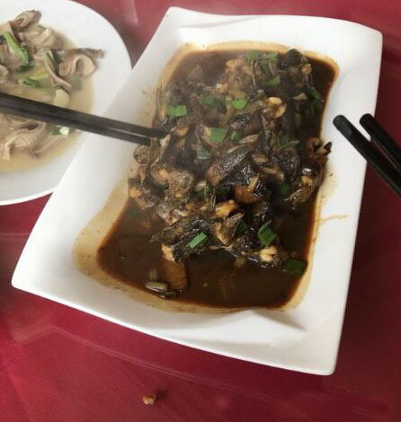 菜肴介紹:以滆湖小刀魚(yú)為新鮮的原材料,佐以自家的配料,在油鍋中煎炸而成。炸得金燦燦的小刀魚(yú)上,撒上把新鮮的香菜末,看著就讓人流口水。 菜肴介紹:當(dāng)天的農(nóng)家菜評(píng)比中,以豬蹄為主題的農(nóng)家菜有好幾道,可只有這道慶蘭豬爪,獲得了評(píng)委們的一致青睞。色澤鮮亮,熬得入味,吃完后口中有回味。當(dāng)天的比賽中,評(píng)委還“嫌”慶蘭樓送來(lái)參評(píng)的豬蹄太少了,七八個(gè)評(píng)委都不夠吃。 “下婆魚(yú)本來(lái)叫下坡魚(yú),大家吃了都覺(jué)得好,一傳十十傳百地就給叫走了音,變成下婆了。”清粼粼的滆湖水里,一網(wǎng)撈出千百條鮮靈靈的小魚(yú)兒。新鮮干凈的小 炸得酥脆,就是一道最好的下酒或是下粥菜。揣在兜里當(dāng) 也很不錯(cuò)呀,嘎嘣咬著,極松脆極鮮美的,魚(yú)刺也都炸酥啦,無(wú)論是老人還是年輕人、小孩都能吃。 除了漏湖里的魚(yú),嘉澤的鵝、雞、鴨等家禽也遠(yuǎn)近聞名。也是因?yàn)樯鷳B(tài)環(huán)境好的緣故,一群學(xué)農(nóng)的博士在這里開(kāi)起了大水牛市民農(nóng)園,主打的就是有機(jī)食材。