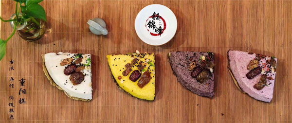 腳踏糕本名“年糕”,按常州周邊地區(qū)的風(fēng)俗習(xí)慣,在春季前夕,各家各戶(hù)都要蒸年糕,吃年糕!案狻敝C音“高”,過(guò)年吃年糕被賜予“年年高”,一年高一年,鋒吉祥之意,表達(dá)這人們對(duì)未來(lái)美好生活的憧憬和良好的祝愿。今天小編要帶大家的就是一家至今保持著傳統(tǒng)手工制作的鈺鋒糕點(diǎn)坊。 鈺鋒糕點(diǎn)坊位于常州鄭陸鎮(zhèn)三皇廟范家莊,一個(gè)比較偏僻的村莊,雖然這家作坊不大,但香糯絲滑,軟糯適中,韌勁十足的腳踏糕吸引了無(wú)數(shù)的食客。制作一條腳踏糕要從淘米,浸泡,碾粉,鋪粉,一層一層的鋪下去,需要無(wú)數(shù)道制作工序,這些都是店主孫煥公公老周,憑著幾十年的經(jīng)驗(yàn),加上店主孫煥從不馬虎的決心! 這“腳踏”也并非赤腳上陣,而是把蒸好的糕倒入早以準(zhǔn)備好的框子里,用布包裹好,上面再用薄膜包好,再蓋上布,再換上專(zhuān)門(mén)腳踏的布鞋,踩的時(shí)候要?jiǎng)蚍Q(chēng),左右腳要配合好,不然糕會(huì)高高低低,不平整,最后再拿蠟燭線拆成一條小長(zhǎng)條,再拿帶包裝好,如此又香又糯的腳踏糕就大功告成了。 店主孫煥為了讓更多的人認(rèn)識(shí)和了解常州腳踏糕的傳統(tǒng)文化和美食,她在傳統(tǒng)工藝中增加了適合現(xiàn)代文化的多種口味,她在糕里加入南瓜,紫薯,老紅糖,大麥汁,血糯米,核桃,葡萄干,紅棗等食材,做出五顏六色,純天然的口味,深受食客們的喜愛(ài),不管是送人還是自己吃都非常新穎。 (重陽(yáng)糕)重陽(yáng)糕的由來(lái),九九重陽(yáng),九是陽(yáng)數(shù),也是陽(yáng)數(shù)中最大的數(shù),九月初九,兩九相重,為之重陽(yáng),古人有重陽(yáng)登高的習(xí)俗。高于糕同意,寓意人活九十九,生活步步高,秋景勝春光,夕陽(yáng)無(wú)限好。夕陽(yáng)紅成了老人對(duì)自己美好的祝愿和希望,所以從某種意義上來(lái)講它“祝壽糕”“長(zhǎng)壽糕”重陽(yáng)糕在常州地區(qū)是家喻戶(hù)曉的,下面小編帶你去一家至今保持傳統(tǒng)手工制作的鈺鋒糕點(diǎn)坊看一下吧。鈺鋒糕點(diǎn)坊位于常州市天寧區(qū)鄭陸鎮(zhèn)三皇廟范家莊,偏僻的小村莊,雖然有點(diǎn)偏僻,但是每到重陽(yáng)節(jié)到來(lái),每天還是有很多食客來(lái)訂購(gòu)和購(gòu)買(mǎi)店主孫煥做的多種口味的重陽(yáng)糕。要想做出松軟香糯的重陽(yáng)糕,原材料和糯米和梗米的配比也很重要,調(diào)整好比例開(kāi)始淘米,浸泡,釓粉,放入糖攪拌,篩粉,糕底部放上荷葉,中間的餡心都是孫煥自己熬制,口感,香糯松軟,店主孫煥為了吸引更多現(xiàn)代年輕人,她在粉里加入南瓜,紫薯,紅糖,血糯等,色彩搭配很出跳,吸引來(lái)了很多食客,孫煥2019年開(kāi)始自愿捐贈(zèng)重陽(yáng)糕給敬老院,她說(shuō)這樣的公益活動(dòng)自己很喜歡,雖然金額不大,缺表達(dá)了她的一份心意,并稱(chēng)這樣的公益活動(dòng)她每年都會(huì)做。