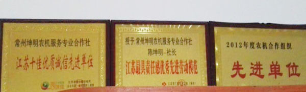 常州坤明農(nóng)機(jī)服務(wù)專業(yè)合作社成立于2009年4月,按照“自愿聯(lián)合、民主管理、自主經(jīng)營、利益共享、風(fēng)險共擔(dān)”原則組建而成。目前合作社成員2872戶,擁有各類農(nóng)業(yè)機(jī)械41臺套,其中高速插秧機(jī)6臺,工廠化育秧設(shè)施672平方米,固定資產(chǎn)200萬元。常年為當(dāng)?shù)丶爸苓呣r(nóng)戶提供農(nóng)機(jī)作業(yè)服務(wù),在實(shí)現(xiàn)“農(nóng)業(yè)增效、農(nóng)民增收”中發(fā)揮了農(nóng)業(yè)機(jī)械化的巨大威力,大大地減輕農(nóng)民勞動強(qiáng)度,促進(jìn)了糧食豐產(chǎn)豐收,深受廣大農(nóng)村干群的歡迎。 2012年合作社農(nóng)機(jī)“一條龍”服務(wù)面積3860畝,其中水稻機(jī)插秧2300畝。榮獲市級示范農(nóng)機(jī)服務(wù)合作社。為了進(jìn)一步滿足廣大農(nóng)戶對農(nóng)機(jī)作業(yè)需求,我社將繼續(xù)開展優(yōu)質(zhì)服務(wù)、合理收費(fèi),拓展農(nóng)機(jī)服務(wù)范圍,促進(jìn)農(nóng)機(jī)事業(yè)的健康發(fā)展。