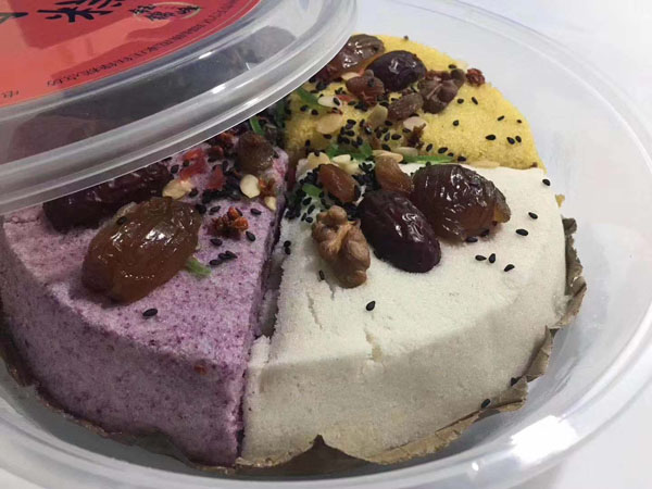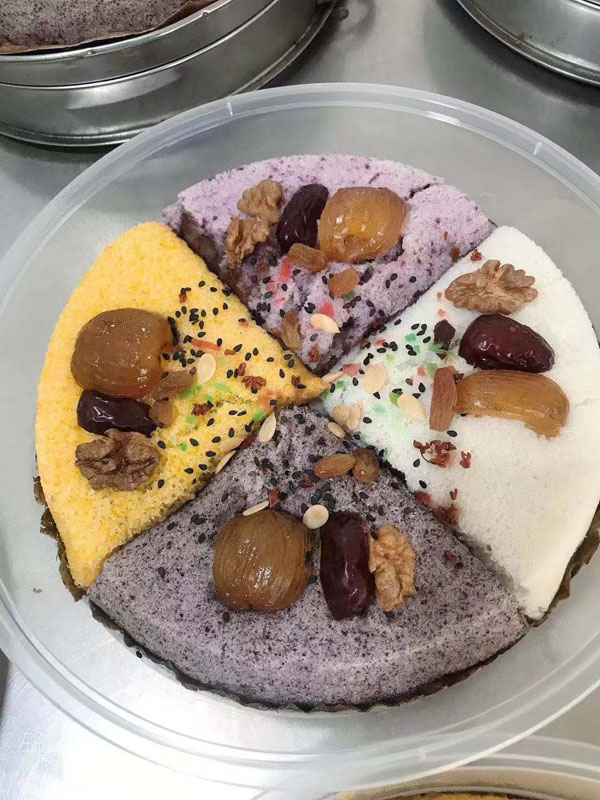 腳踏糕本名“年糕”,按常州周邊地區(qū)的風(fēng)俗習(xí)慣,在春季前夕,各家各戶都要蒸年糕,吃年糕。“糕”諧音“高”,過年吃年糕被賜予“年年高”,一年高一年,鋒吉祥之意,表達(dá)這人們對(duì)未來美好生活的憧憬和良好的祝愿。今天小編要帶大家的就是一家至今保持著傳統(tǒng)手工制作的鈺鋒糕點(diǎn)坊。 鈺鋒糕點(diǎn)坊位于常州鄭陸鎮(zhèn)三皇廟范家莊,一個(gè)比較偏僻的村莊,雖然這家作坊不大,但香糯絲滑,軟糯適中,韌勁十足的腳踏糕吸引了無數(shù)的食客。制作一條腳踏糕要從淘米,浸泡,碾粉,鋪粉,一層一層的鋪下去,需要無數(shù)道制作工序,這些都是店主孫煥公公老周,憑著幾十年的經(jīng)驗(yàn),加上店主孫煥從不馬虎的決心! 這“腳踏”也并非赤腳上陣,而是把蒸好的糕倒入早以準(zhǔn)備好的框子里,用布包裹好,上面再用薄膜包好,再蓋上布,再換上專門腳踏的布鞋,踩的時(shí)候要?jiǎng)蚍Q,左右腳要配合好,不然糕會(huì)高高低低,不平整,最后再拿蠟燭線拆成一條小長(zhǎng)條,再拿帶包裝好,如此又香又糯的腳踏糕就大功告成了。 店主孫煥為了讓更多的人認(rèn)識(shí)和了解常州腳踏糕的傳統(tǒng)文化和美食,她在傳統(tǒng)工藝中增加了適合現(xiàn)代文化的多種口味,她在糕里加入南瓜,紫薯,老紅糖,大麥汁,血糯米,核桃,葡萄干,紅棗等食材,做出五顏六色,純天然的口味,深受食客們的喜愛,不管是送人還是自己吃都非常新穎。 (重陽糕)重陽糕的由來,九九重陽,九是陽數(shù),也是陽數(shù)中最大的數(shù),九月初九,兩九相重,為之重陽,古人有重陽登高的習(xí)俗。高于糕同意,寓意人活九十九,生活步步高,秋景勝春光,夕陽無限好。夕陽紅成了老人對(duì)自己美好的祝愿和希望,所以從某種意義上來講它“祝壽糕”“長(zhǎng)壽糕”重陽糕在常州地區(qū)是家喻戶曉的,下面小編帶你去一家至今保持傳統(tǒng)手工制作的鈺鋒糕點(diǎn)坊看一下吧。鈺鋒糕點(diǎn)坊位于常州市天寧區(qū)鄭陸鎮(zhèn)三皇廟范家莊,偏僻的小村莊,雖然有點(diǎn)偏僻,但是每到重陽節(jié)到來,每天還是有很多食客來訂購(gòu)和購(gòu)買店主孫煥做的多種口味的重陽糕。要想做出松軟香糯的重陽糕,原材料和糯米和梗米的配比也很重要,調(diào)整好比例開始淘米,浸泡,釓粉,放入糖攪拌,篩粉,糕底部放上荷葉,中間的餡心都是孫煥自己熬制,口感,香糯松軟,店主孫煥為了吸引更多現(xiàn)代年輕人,她在粉里加入南瓜,紫薯,紅糖,血糯等,色彩搭配很出跳,吸引來了很多食客,孫煥2019年開始自愿捐贈(zèng)重陽糕給敬老院,她說這樣的公益活動(dòng)自己很喜歡,雖然金額不大,缺表達(dá)了她的一份心意,并稱這樣的公益活動(dòng)她每年都會(huì)做。