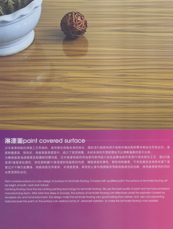 常州漢豐裝飾材料有限公司是一家涉及強化地板制造、屏風鋁材生產(chǎn)、進出口貿(mào)易的大型公司。2001年公司投入重資.全面引進世界頂級一體化自動流水生產(chǎn)線和具有國際先進水準的德國權(quán)威木地板生產(chǎn)技術(shù),興建強化地板生產(chǎn)基地。多年以來.一直不斷加強生產(chǎn)設(shè)備、廠房基礎(chǔ)投入,目前公司年生產(chǎn)強化地板能力已經(jīng)達到了500萬平方米,步入國內(nèi)一流行列,具備了雄厚的國際競爭力。 漢豐地板以奉獻生活中最完美的地板為發(fā)展目標,時尚流行的設(shè)計風格和多樣化的產(chǎn)品類型,贏得了市場的廣泛贊譽和肯定。產(chǎn)品嚴格按照歐洲標準檢測強化木地板的各項性能指標.達到百分百的國際技術(shù)標準,確保了每一塊地板都有著上乘品質(zhì),是綠色環(huán)保的好地板。并先后通過了Isc)9001國際質(zhì)量管理體系認證,IS014001國際環(huán)境管理體系認證.中國環(huán)境標志產(chǎn)品認證,深得用戶的一致好評,是寫字樓、商場、大型超市、學校、建筑樓宇、娛樂場所、家用私宅等鋪裝的首選地板。