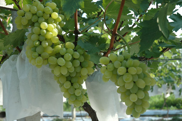 夏莊果品專業(yè)合作社主要種植葡萄品種有夏黑、巨峰、甬優(yōu)、騰稔、金手指、醉金香等品種。今后視葡萄良種更新需要,還需逐步調(diào)整優(yōu)質(zhì)品種結(jié)構(gòu),合作社種植的“水鄉(xiāng)牌”葡萄已獲得全國(guó)綠色食品證書。合作社統(tǒng)一推廣綠色食品葡萄生產(chǎn)技術(shù)規(guī)程,疏花、疏果、剪枝、套袋、施肥、防病治蟲、噴滴管實(shí)施面積已達(dá)2000多畝,田園管理機(jī)(翻耕)150多臺(tái)、田園植保機(jī)200多臺(tái),努力使葡萄產(chǎn)量控制在適宜范圍,保證葡萄外觀品質(zhì),內(nèi)在質(zhì)量,口味口感及質(zhì)量安全俱佳。在2009年8月23日參加了“江蘇省中山杯”優(yōu)質(zhì)葡萄評(píng)比中,合作社選送的“水鄉(xiāng)牌”醉金香葡萄榮獲江蘇省葡萄評(píng)比銀獎(jiǎng),2011年7月29日江蘇省優(yōu)質(zhì)葡萄“中山杯”評(píng)比中,合作社選送的“水鄉(xiāng)牌”夏黑葡萄榮獲金獎(jiǎng),2011年合作社被江蘇省評(píng)為“江蘇省名優(yōu)產(chǎn)品”(優(yōu)質(zhì)產(chǎn)品)。2012年7月25日在“江蘇省中山杯”優(yōu)質(zhì)葡萄評(píng)比中,合作社選送的“水鄉(xiāng)牌”夏黑葡萄獲得金獎(jiǎng),選送的“水鄉(xiāng)牌”金手指獲得銀獎(jiǎng),2012年8月10日合作社選送的“水鄉(xiāng)牌”金手指,“水鄉(xiāng)牌”夏黑葡萄分別獲得全國(guó)農(nóng)學(xué)會(huì)葡萄分會(huì)金獎(jiǎng),2012年8月18日,合作社選送的“水鄉(xiāng)牌”巨峰葡萄獲得中國(guó)南方“中山杯”金獎(jiǎng),“水鄉(xiāng)牌”巨玫瑰葡萄獲得中國(guó)南方“中山杯”銀獎(jiǎng)。在2013年都夏莊果品專業(yè)合作社種植的“水鄉(xiāng)牌”葡萄已獲得常州市名優(yōu)農(nóng)產(chǎn)品稱號(hào)。2013年8月3日,合作社選送的“水鄉(xiāng)”牌陽(yáng)光玫瑰葡萄,在江蘇省第六屆“中山杯”優(yōu)質(zhì)葡萄評(píng)比中獲金獎(jiǎng),“水鄉(xiāng)”牌夏黑葡萄在江蘇省第六屆“中山杯”優(yōu)質(zhì)葡萄評(píng)比中獲金獎(jiǎng),“水鄉(xiāng)”牌魏可葡萄在江蘇省第六屆“中山杯”優(yōu)質(zhì)葡萄評(píng)比中獲金獎(jiǎng),“水鄉(xiāng)”牌金手指葡萄在江蘇省第六屆“中山杯”優(yōu)質(zhì)葡萄評(píng)比中獲金獎(jiǎng),在2013年金手指葡萄在江蘇省第七屆“神園杯”優(yōu)質(zhì)水果評(píng)比中榮獲金獎(jiǎng),夏黑葡萄在江蘇省第七屆“神園杯”優(yōu)質(zhì)水果評(píng)比中獲金獎(jiǎng)。2014年9月水鄉(xiāng)牌葡萄獲“常州市名優(yōu)農(nóng)產(chǎn)品”稱號(hào)。