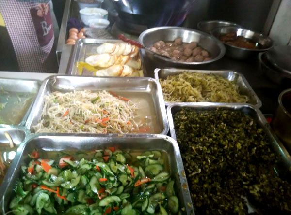 魁元面館,橫山橋江南路,沿街的店鋪。老板娘徐文霞,從公婆手里接過這個(gè)店面已有20多年。最具特色的菜品是肉圓跟大排。每天凌晨3點(diǎn)就要起來做準(zhǔn)備,菜都是現(xiàn)燒現(xiàn)賣。 特色小菜: 肉圓:有人特意遠(yuǎn)道而來打包走 大排面:每天能賣出100來塊大排 大腸 雞蛋:每天煎的雞蛋就差不多300來個(gè) 小餛飩、大餛飩 限時(shí)供應(yīng): 咸鴨蛋、肉粽、蛋黃粽:每天都要包,放爐子燒,在端午前后供應(yīng),很好吃。每天都有人打包幾個(gè)咸鴨蛋或者粽子拿回家,送人 油酥餅(圖3-4)、糍團(tuán)餅(圖5-6)、韭菜餅(圖7-8) 油酥餅每天晚上做,涼了更好吃,更酥更脆,里面都是很香的黑芝麻;糍團(tuán)餅,每天中午擺攤熱了煎鍋開始煎,糯米做成,用菜籽油煎至金黃,餡兒是黑芝麻瓜子仁;韭菜餅是最受歡迎的,每天都有好多人排隊(duì)來買。供應(yīng)時(shí)間:每年的4月份到11月份 下午1點(diǎn)到5點(diǎn)半。