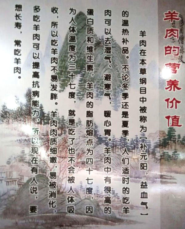 鄭陸橋頭羊肉館主要從事羊肉、羊肉制品的加工。羊肉性溫?zé)、補(bǔ)氣滋陽、暖中補(bǔ)氣、開胃健脾、還可以去濕氣避寒冷,暖胃寒、養(yǎng)吃百草、養(yǎng)根據(jù)自身生理需要選擇草木、固羊有“百藥之庫”之稱。古人云:多吃羊肉、健康長壽。