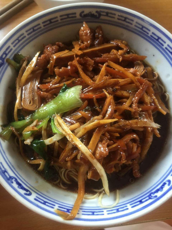 遙觀娟娟面館:青菜香菇雞蛋面 2016年歲末年初,武進(jìn)區(qū)商務(wù)局、武進(jìn)烹飪協(xié)會(huì)、《武進(jìn)日?qǐng)?bào)》等單位,在全區(qū)范圍內(nèi)開(kāi)展“武進(jìn)招牌面”評(píng)選活動(dòng),最終,遙觀娟娟面館被評(píng)定為“武進(jìn)招牌面”第一名。 2008年,馬玉娟所在的企業(yè)面臨倒閉,她開(kāi)始謀求自己的創(chuàng)業(yè)之路。第一個(gè)想法就是開(kāi)一家面館,因?yàn)槊妹民R小娟喜歡燒菜,親戚朋友吃了她燒的菜,無(wú)不嘖嘖稱贊。姐妹倆一合作,店名自然叫“娟娟面館”。 開(kāi)面館,一面裝修,一面領(lǐng)“衛(wèi)生許可證”、“工商營(yíng)業(yè)執(zhí)照”;再就是外出求藝學(xué)燒菜。姐妹倆兵分兩路:玉娟去學(xué)小炒,小娟去學(xué)大葷澆頭,不久便開(kāi)張營(yíng)業(yè)了。 行家吃面先品湯。娟娟面館的白湯是最樸實(shí)的燒法,它用大肉、排骨熬制4個(gè)小時(shí),湯色清亮,香氣撲鼻。至于拌面湯,全部都是紅燒肉汁,加上香蔥、雞精等十多種調(diào)料,自然是色香味俱佳。 娟娟面館點(diǎn)單率最高的是青菜香菇雞蛋面,一菜一菇一蛋一湯,樸實(shí)無(wú)華,價(jià)廉物美,老少皆宜,久吃不厭,非常適宜我國(guó)人口的營(yíng)養(yǎng)膳食結(jié)構(gòu)。其中小青菜是當(dāng)?shù)剞r(nóng)家的家常菜;雞蛋是當(dāng)?shù)毓麍@散養(yǎng)的母雞所生,味道自然地道純正了。 娟娟面館自開(kāi)張以來(lái),幾乎天天顧客盈門(mén),高峰時(shí)要在門(mén)外等候。如今姐姐的兒子和妹妹的女兒都已上陣傳承,并在湖塘鎮(zhèn)馬杭紡織城附近新開(kāi)了一家連鎖面館,每天要賣(mài)出300-500碗各式面點(diǎn)。
