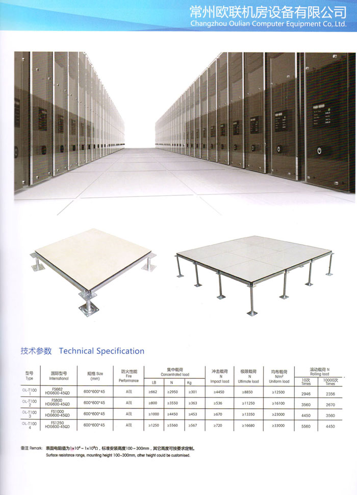防靜電高架活動(dòng)地板、全鋼地板、陶瓷地板是計(jì)算機(jī)行業(yè)發(fā)展起來(lái)的新型鋪地材料,隔離了潮氣、靜電灰塵,最重要的是解決了綜合布線問(wèn)題,無(wú)需預(yù)埋管線,可隨時(shí)拆卸、搬移,保證了資訊設(shè)備完整的優(yōu)點(diǎn),適應(yīng)了智能化樓宇中信息自動(dòng)化技術(shù)對(duì)所處環(huán)境的特定要求,避免了廣大客戶的雙重投資,使現(xiàn)代化辦公程度更加高效,辦公場(chǎng)所更加舒適。 “歐聯(lián)”系列全鋼地板,符合國(guó)家安全要求,種類完備多樣,其中防靜電陶瓷地板、硫酸鈣地板等除具有普通瓷質(zhì)的裝飾和實(shí)用性外,其耐磨、防水、防火功能優(yōu)于其它同類產(chǎn)品,防靜電系列地板,能切合不同客戶的要求,其靈活的配置,深受客戶歡迎,不同材質(zhì)的地板結(jié)構(gòu)使設(shè)計(jì)師的設(shè)計(jì)空間比傳統(tǒng)的更加廣闊自由和善變。 公司大力發(fā)展國(guó)內(nèi)外銷售業(yè)務(wù),多次中標(biāo)國(guó)內(nèi)重點(diǎn)工程 ,例:哈爾濱醫(yī)科大學(xué)、山東大學(xué)、上海普通機(jī)場(chǎng)等。 公司將一如既往開發(fā)和制造一流的產(chǎn)品,愿與廣大有識(shí)之士合作發(fā)展,共創(chuàng)美好未來(lái)。