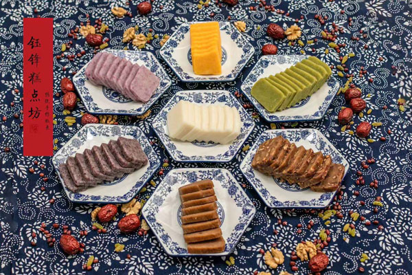 腳踏糕本名“年糕”,按常州周邊地區(qū)的風(fēng)俗習(xí)慣,在春季前夕,各家各戶都要蒸年糕,吃年糕!案狻敝C音“高”,過年吃年糕被賜予“年年高”,一年高一年,鋒吉祥之意,表達(dá)這人們對(duì)未來美好生活的憧憬和良好的祝愿。今天小編要帶大家的就是一家至今保持著傳統(tǒng)手工制作的鈺鋒糕點(diǎn)坊。 鈺鋒糕點(diǎn)坊位于常州鄭陸鎮(zhèn)三皇廟范家莊,一個(gè)比較偏僻的村莊,雖然這家作坊不大,但香糯絲滑,軟糯適中,韌勁十足的腳踏糕吸引了無數(shù)的食客。制作一條腳踏糕要從淘米,浸泡,碾粉,鋪粉,一層一層的鋪下去,需要無數(shù)道制作工序,這些都是店主孫煥公公老周,憑著幾十年的經(jīng)驗(yàn),加上店主孫煥從不馬虎的決心! 這“腳踏”也并非赤腳上陣,而是把蒸好的糕倒入早以準(zhǔn)備好的框子里,用布包裹好,上面再用薄膜包好,再蓋上布,再換上專門腳踏的布鞋,踩的時(shí)候要?jiǎng)蚍Q,左右腳要配合好,不然糕會(huì)高高低低,不平整,最后再拿蠟燭線拆成一條小長(zhǎng)條,再拿帶包裝好,如此又香又糯的腳踏糕就大功告成了。 店主孫煥為了讓更多的人認(rèn)識(shí)和了解常州腳踏糕的傳統(tǒng)文化和美食,她在傳統(tǒng)工藝中增加了適合現(xiàn)代文化的多種口味,她在糕里加入南瓜,紫薯,老紅糖,大麥汁,血糯米,核桃,葡萄干,紅棗等食材,做出五顏六色,純天然的口味,深受食客們的喜愛,不管是送人還是自己吃都非常新穎。 (重陽糕)重陽糕的由來,九九重陽,九是陽數(shù),也是陽數(shù)中最大的數(shù),九月初九,兩九相重,為之重陽,古人有重陽登高的習(xí)俗。高于糕同意,寓意人活九十九,生活步步高,秋景勝春光,夕陽無限好。夕陽紅成了老人對(duì)自己美好的祝愿和希望,所以從某種意義上來講它“祝壽糕”“長(zhǎng)壽糕”重陽糕在常州地區(qū)是家喻戶曉的,下面小編帶你去一家至今保持傳統(tǒng)手工制作的鈺鋒糕點(diǎn)坊看一下吧。鈺鋒糕點(diǎn)坊位于常州市天寧區(qū)鄭陸鎮(zhèn)三皇廟范家莊,偏僻的小村莊,雖然有點(diǎn)偏僻,但是每到重陽節(jié)到來,每天還是有很多食客來訂購和購買店主孫煥做的多種口味的重陽糕。要想做出松軟香糯的重陽糕,原材料和糯米和梗米的配比也很重要,調(diào)整好比例開始淘米,浸泡,釓粉,放入糖攪拌,篩粉,糕底部放上荷葉,中間的餡心都是孫煥自己熬制,口感,香糯松軟,店主孫煥為了吸引更多現(xiàn)代年輕人,她在粉里加入南瓜,紫薯,紅糖,血糯等,色彩搭配很出跳,吸引來了很多食客,孫煥2019年開始自愿捐贈(zèng)重陽糕給敬老院,她說這樣的公益活動(dòng)自己很喜歡,雖然金額不大,缺表達(dá)了她的一份心意,并稱這樣的公益活動(dòng)她每年都會(huì)做。