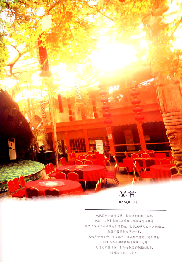 淹城花都溫泉水城孕育天地之精華,悅身、悅?cè)、悅心、悅神。置身其中泉水潺潺,霧氣繚繞、花瓣飄香,恍若仙境!稗渌略谑郑ㄏ銤M衣”,花都溫泉的浪漫與溫潤(rùn)在這里完美展現(xiàn)。 花都溫泉水城包括洗浴區(qū)、戲水世界、露天溫泉、自助餐廳、生態(tài)房、別墅區(qū)、紅文化房、VIP區(qū)等多種功能區(qū)域,是集溫泉養(yǎng)生、休閑住宿、演藝會(huì)務(wù)為—體的休閑度假勝地,給賓客帶來江南小鎮(zhèn)的浪漫水城之旅。 古木新枝畔賓客對(duì)酒當(dāng)歌,溪泉石椅旁把茶品啜。 淹城-三勤生態(tài)酒店,這里是一處綠色生態(tài)的美食家園。此地鬼斧神工.奇水異石,和風(fēng)細(xì)雨林中穿過,引百鳥朝來暮歌;這里集生態(tài)餐飲、演藝、中小型會(huì)務(wù)為一體,將現(xiàn)代裝飾風(fēng)格和古雅拙樸的自然裝修完美整合;這里聚集大江南北名廚,推出精致綠色美昧佳肴。來到這里,賓客可享田園至美之景,品舌尖至鮮之味,實(shí)乃人生一大樂事。