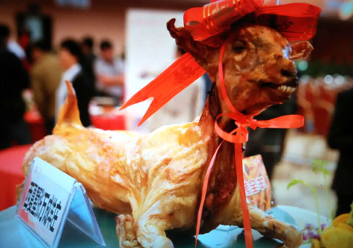 張萬成羊莊一家綜合性的公司,下設酒店,羊產品加工廠,屠宰廠,山羊養(yǎng)殖場。 酒店位于常州西夏墅浦河村,酒店羊宴規(guī)模占地30畝,酒店主要經營特色全羊宴。 一個祖?zhèn)鞯臍⒀虼髴簦瑐鞯綇埲f成,已是第六代了。張家的羊肉,素來以肉質鮮美著稱,張萬成羊莊的主人張建龍是第六代傳人,張家的羊肉素來以肉質鮮美著稱,從常州新北區(qū)沿黃河西路往機場方向直行至羅溪右轉,穿過滬寧高速高架橋后不遠處左拐沿翠屏湖路直走便能看到張萬成羊莊,酒店上下共有三層,2000多平方米經營面積,能同時接待近30桌客人的規(guī)模。有自己的羊圈和屠宰場,每天殺20多只,菜式近100道。光是原料,就從原來羊身上的幾個主要部位,增加到除了羊牙齒以外的一只整羊全部可以入菜。烹制方式,更是在本土單一的燒、炒、煮基礎上,借鑒了東北、廣東、四川等地的烹羊特色,增加了蒸、涮、烤、煎、炸等多種方式。 注重原汁原味的冷菜 白切羊肉:精選羊頸部的活肉精制而成,肥瘦適中,絲毫沒有一般羊肉的膻味,沾少許張萬成羊莊秘制的醬料,口感非常好。 美味羊舌:張家的羊舌感覺是用特殊的醬料腌制過的,咸中略有甜味,口感鮮嫩卻肥而不膩,味道很香。 除了白切羊肉和羊舌以外還有許多冷菜品種,如羊肚、羊心、羊耳朵等。。 火候控制精準的炒菜 炒羊肝:地道的農家風味,與大蒜葉同炒,蒜香濃郁,羊肝鮮嫩,這羊肝可是火候菜,羊肝鮮嫩與否不但取決于廚師對火候的掌握,還在于上桌放置時間的長短,所以羊肝上桌后要盡快食用,看羊肝是否鮮嫩,只需用筷子挑起并輕輕抖動,有彈性者為佳。 美味羊寶:以韭黃、鮑味菇爆炒的羊寶,說是滋補壯陽的一道金貴菜,配料講究的燒菜系列 宮廷燴羊肚:較為金貴的菜品,配菜貴于主料,是以名貴的素鮑和新鮮的筍絲與羊肚同煮,口感濃郁,營養(yǎng)豐富。 海參白燒羊肉:將取自7個月大羔羊身上的帶皮腿肉與海參一同煨煮,菜肴美容滋補,兩種鮮味互相補益達到完美交融狀態(tài),口感甚佳。 魚羊鮮:新鮮的青魚配上羊肉,既有本地羊肉的肥嫩,又有魚肉的鮮香,鮮!鮮!古代人造字就是有道理!”店里可以根據客人的需要配以魚回魚、鯰魚、鱖魚等。 特色的羊宴點心 羊肉餛飩:羊莊老板自創(chuàng)的羊宴點心,看似普通的油燜跑蛋卻另有乾坤,將蛋掀開便能看見藏于其中的羊肉菜餡餛飩,菜和肉都是自家新鮮的原料,很好吃。 手工搟面:不知道是因為面是真正用手工搟制還是因為加入了鮮味十足的羊湯,總之味道非常好,面勁道,湯也鮮美! 張萬成羊莊的羊湯也是遠近聞名,因為是祖?zhèn)鞯氖炙,做出來的羊湯不腥不膻,香醇不膩,味道十分鮮美,加入粉絲或者面條更是難得的美味。